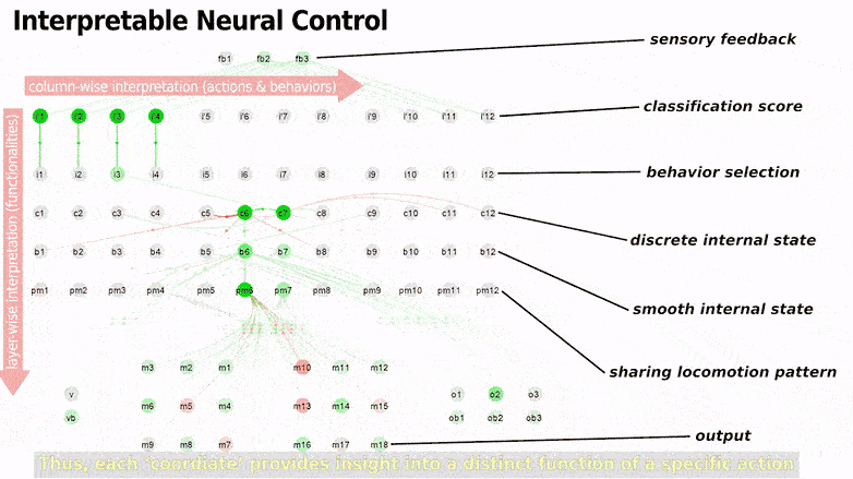 Growable and Interpretable Neural Control with Online Continual Learning for Autonomous Lifelong Locomotion Learning Machines